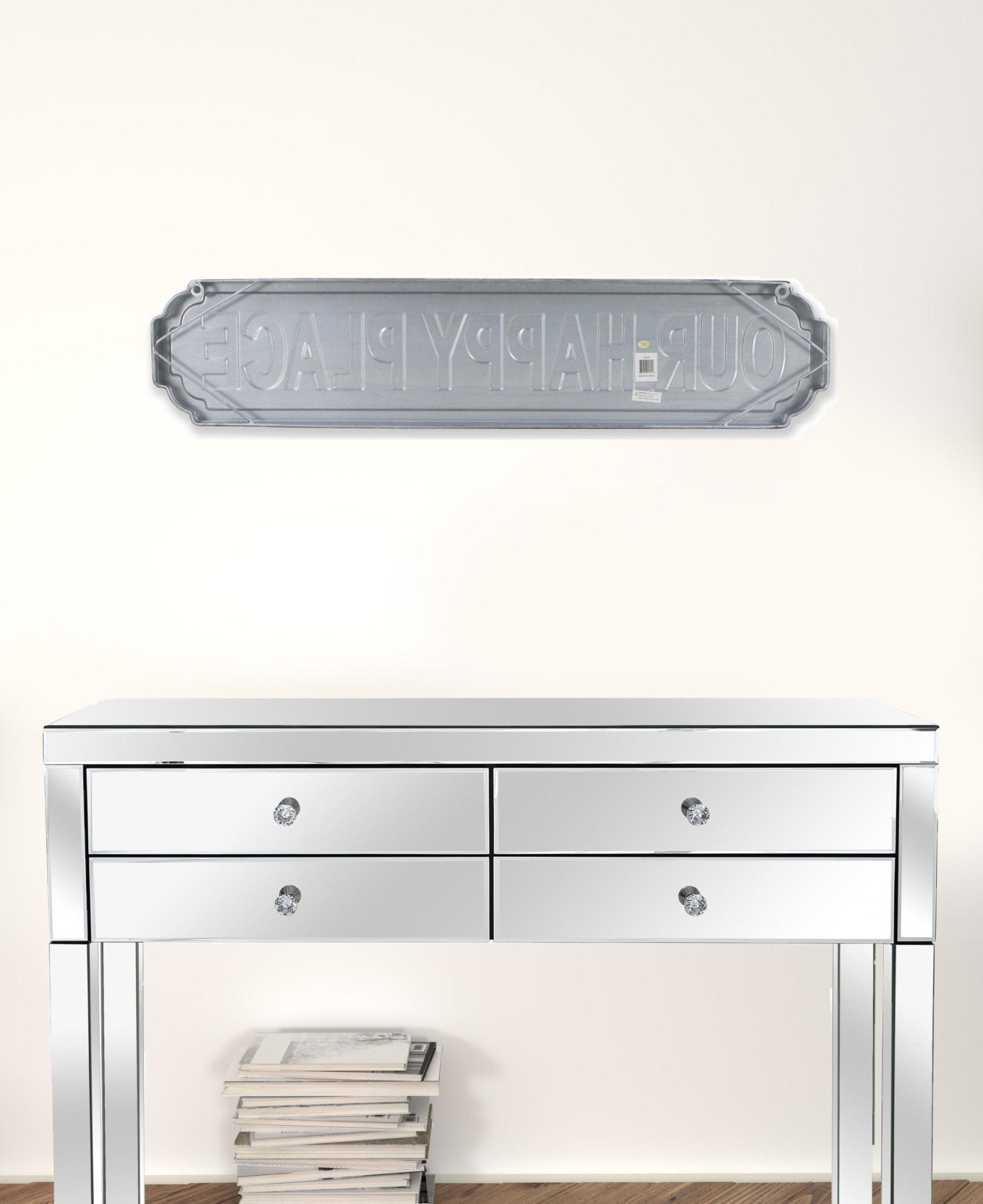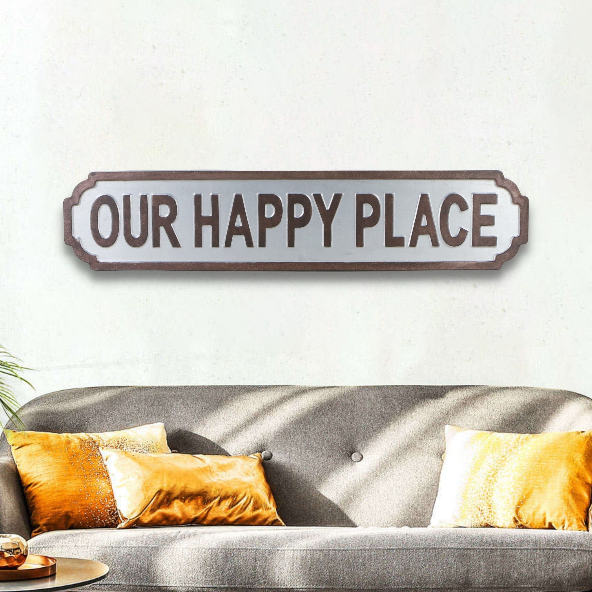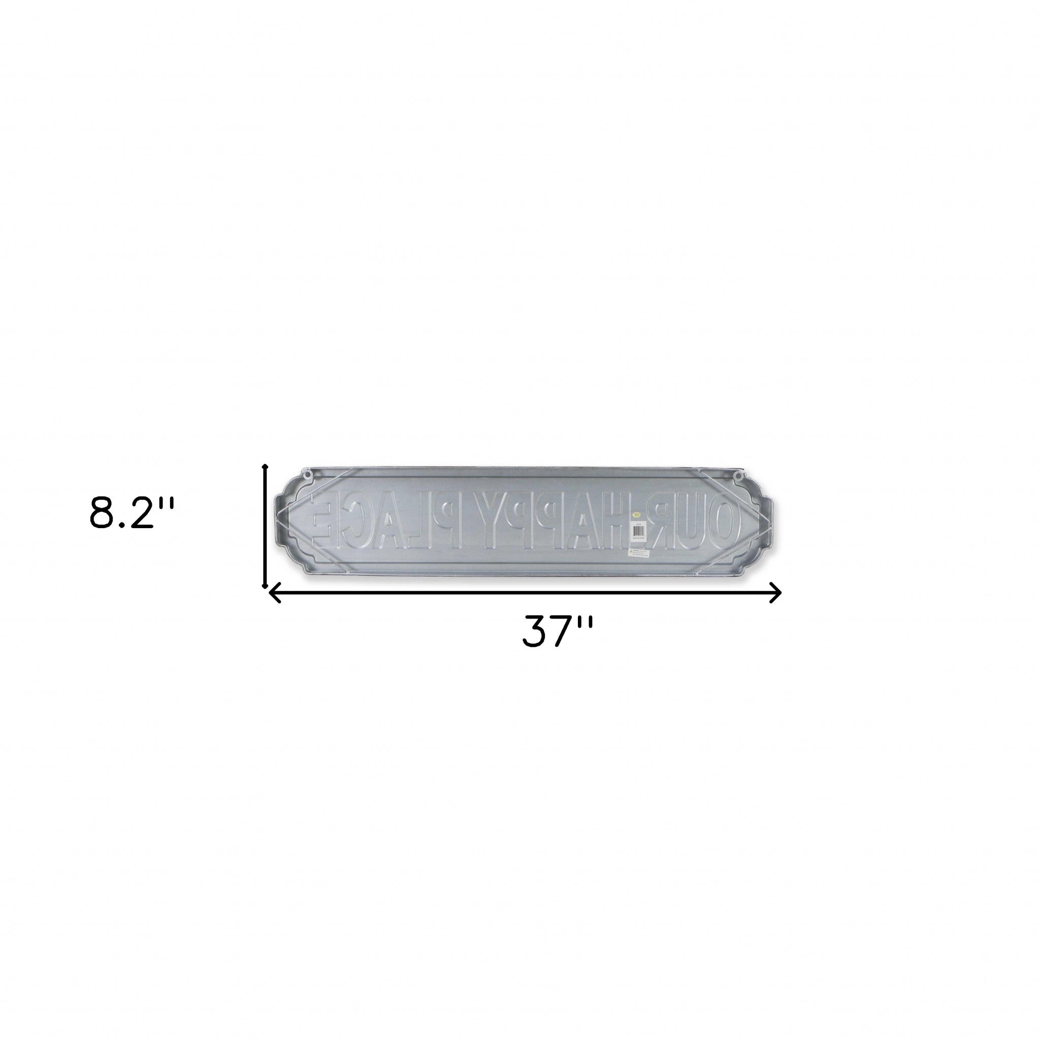 "Our Happy Place" Gray Metal Plaque Wall Decor | 8"x37"