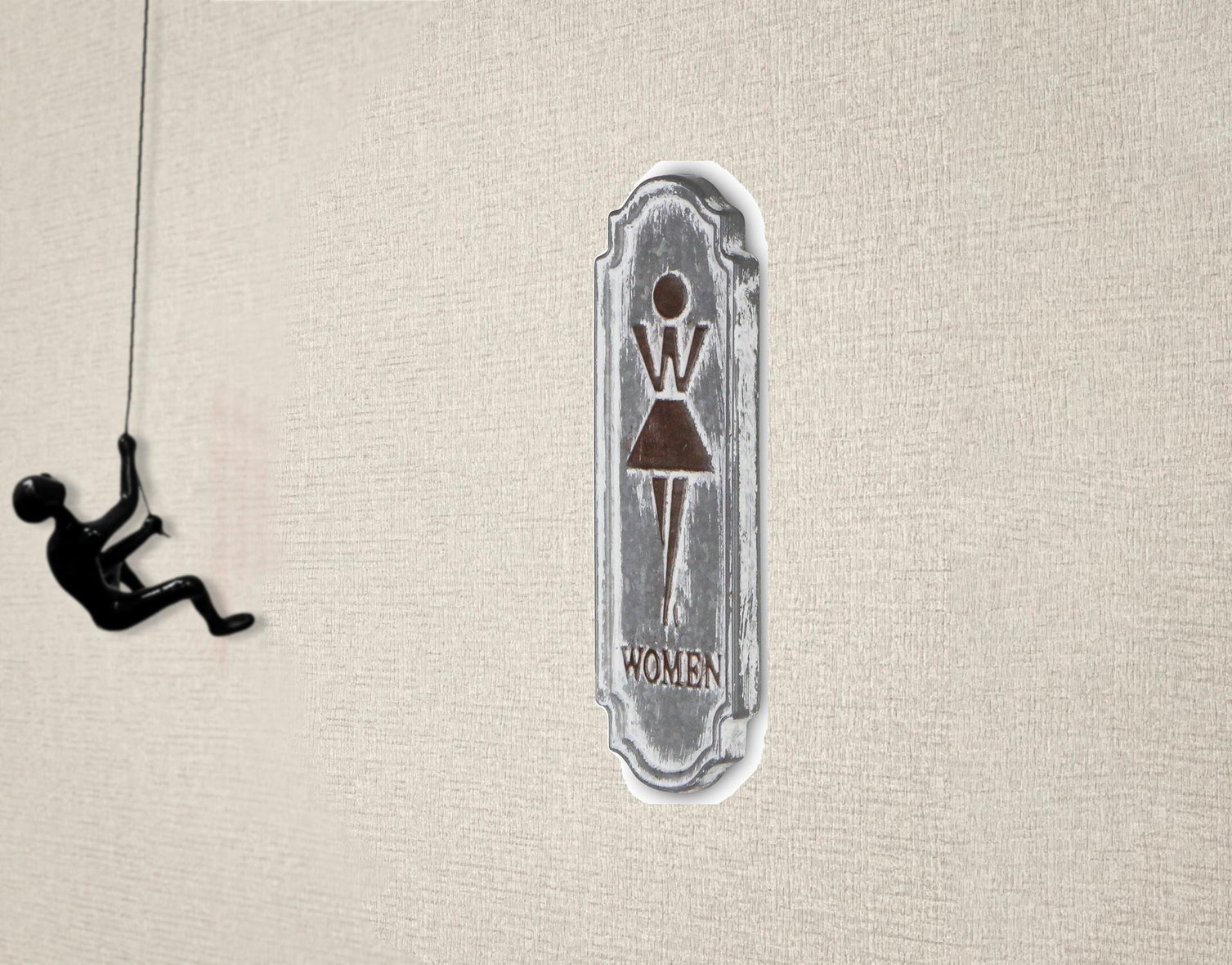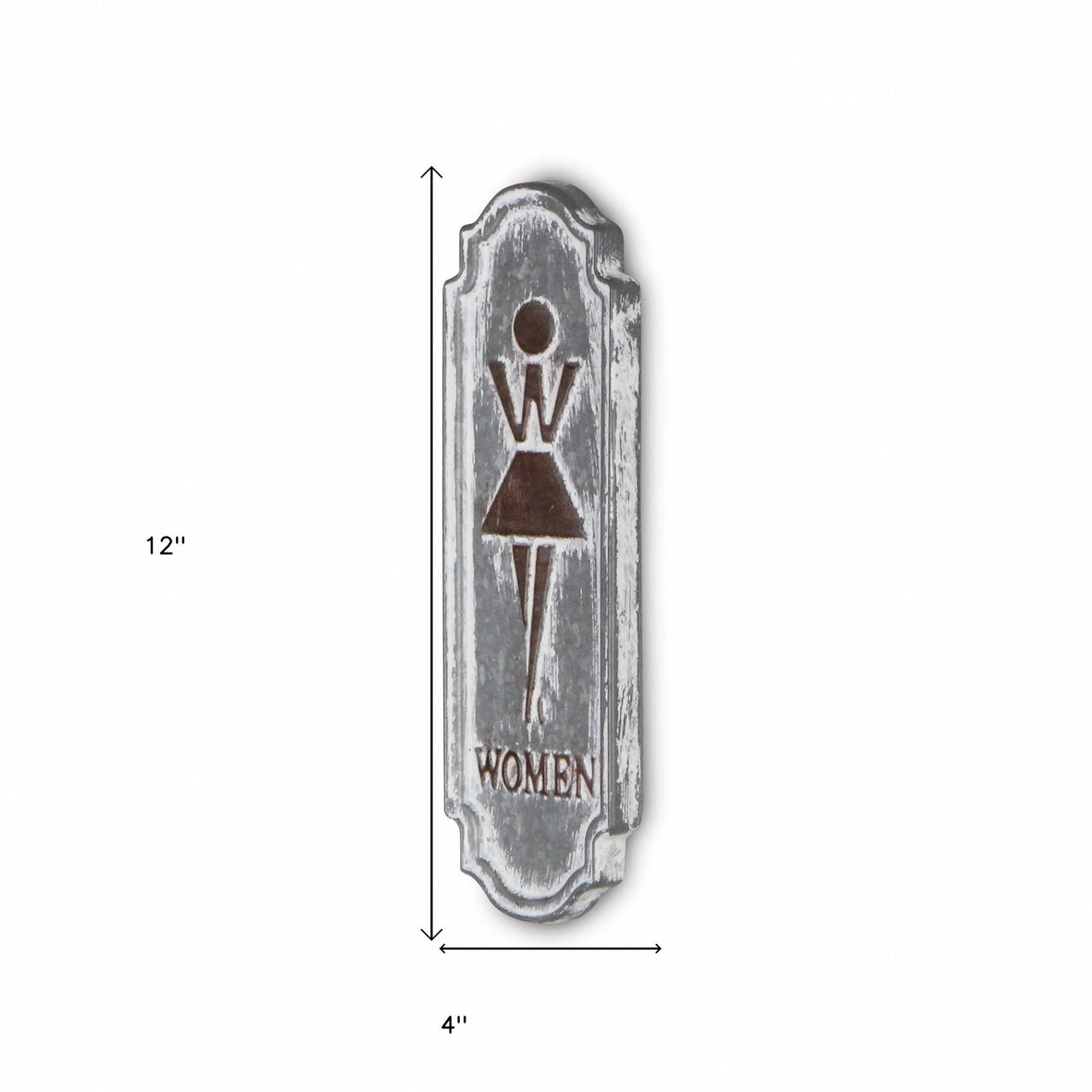 Introducing our Rustic Gray Metal Womens Room Wall Decor | 12"x4" - a statement piece designed to celebrate the unique flair and character of any living space. Crafted with meticulous attention to detail, this decor is not just an accessory; it's a proclamation of style, a testament to exquisite taste, and an embodiment of the artistry found in the simplicity of rustic design.