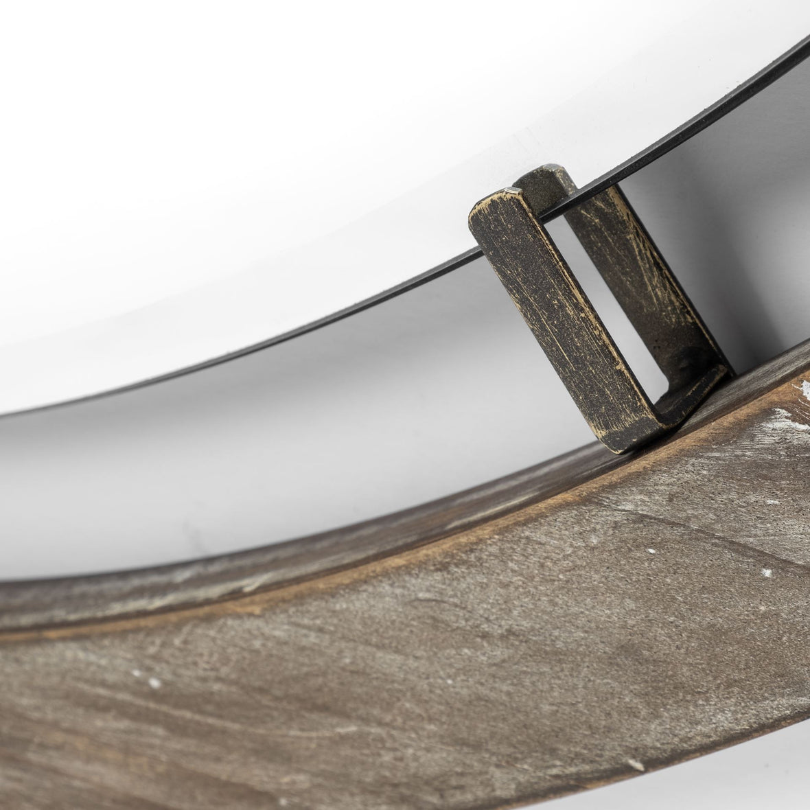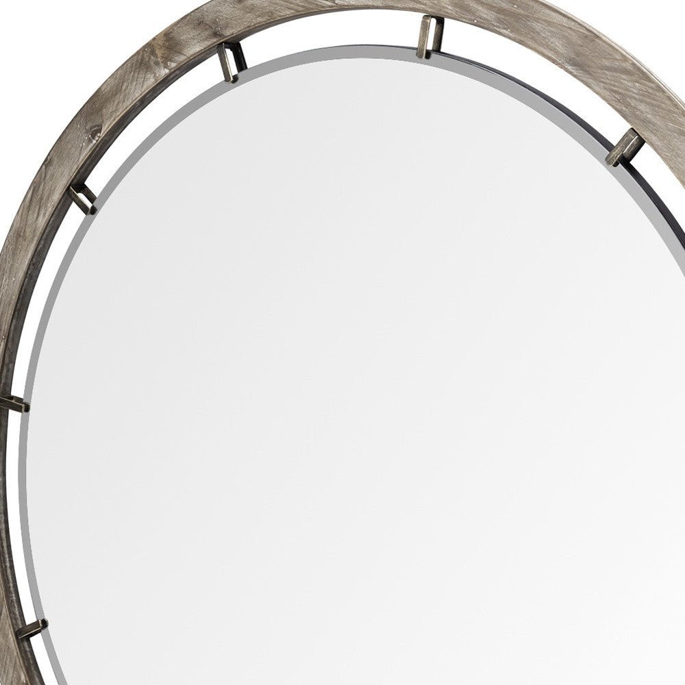 Adorning your wall with its impressive 46-inch diameter, this round mirror features a meticulously crafted wooden frame in a luxurious brown finish that exudes classical grandeur and finesse. The double-frame design adds depth and character, making it an enchanting focal point in any room.