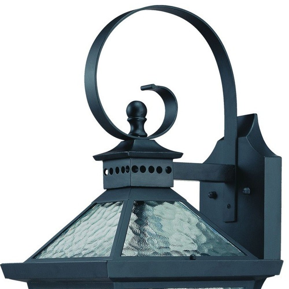 The fixture features hammered glass panels that beautifully diffuse light, creating a warm, inviting glow that enhances your entryway, porch, patio, or driveway. With space for three candelabra bulbs (E12 base, 60W max each, not included), it delivers ample illumination for safety and style. Rated for wet locations, this lantern is ideal for exposed outdoor environments, ensuring versatility and reliability year-round.