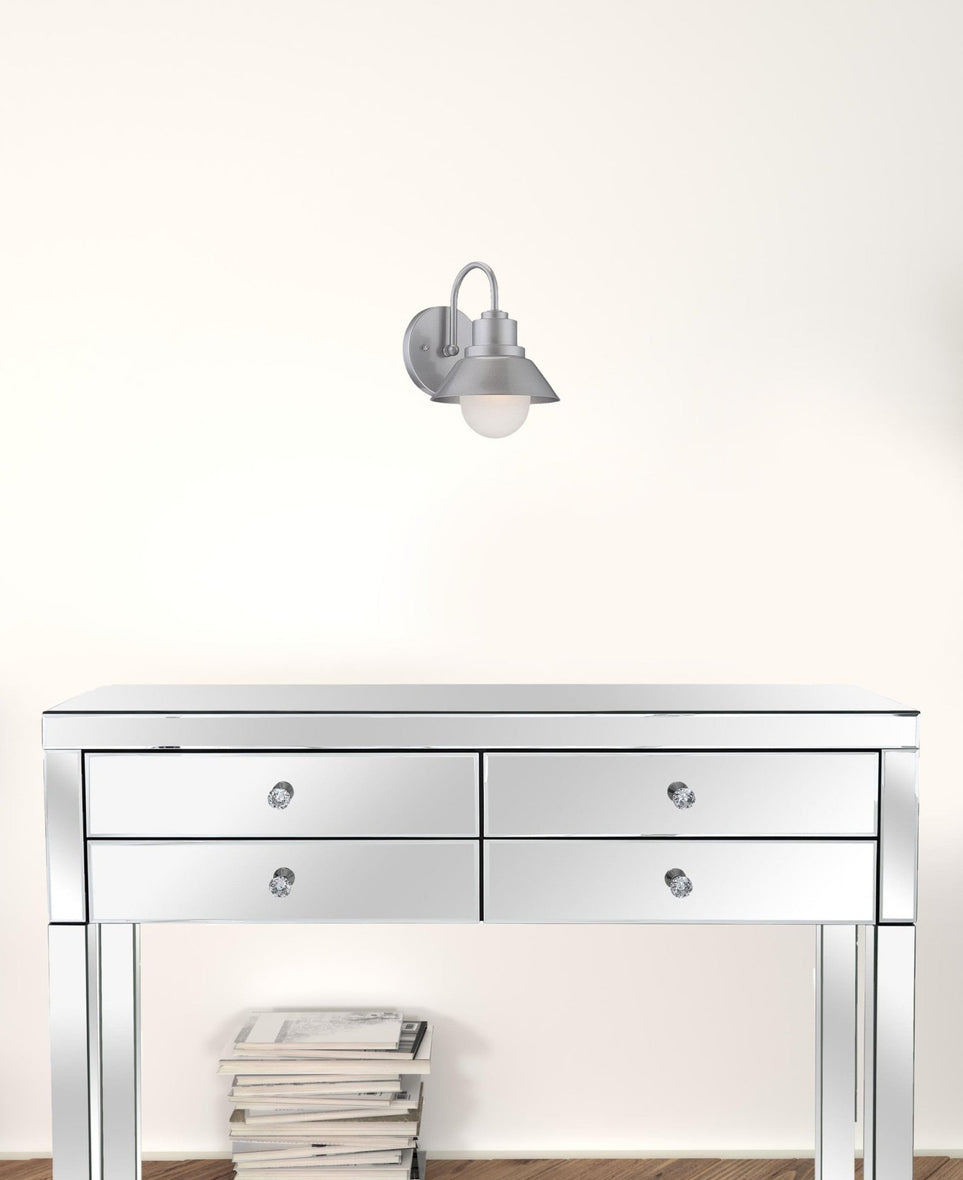 The Brushed Silver Lamp Shade Wall Light adds a stylish accent to any outdoor space. Use it in pairs on either side of your front door, or mount it along backyard patios and garages for a modern yet welcoming glow.