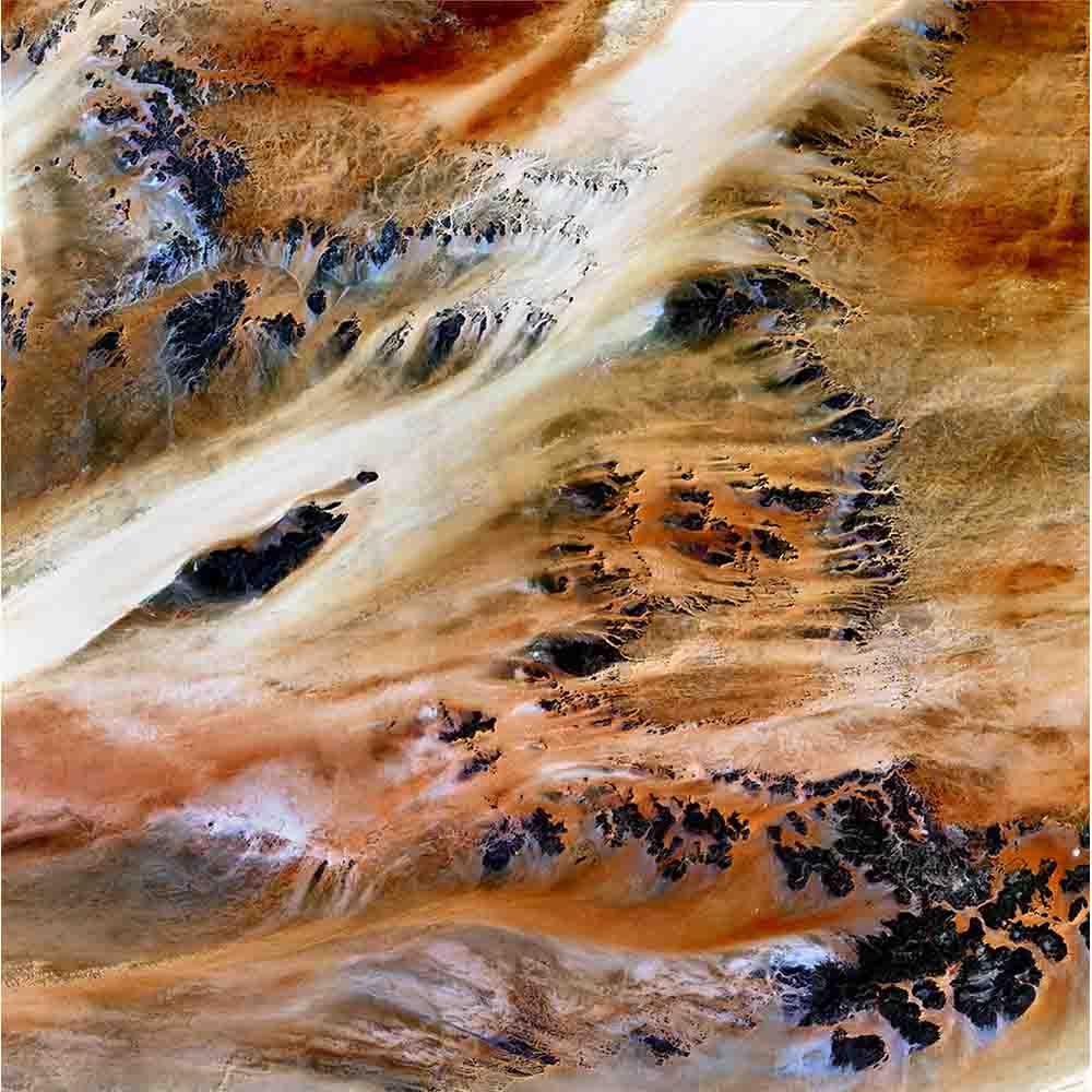 Immerse yourself in the extraordinary detail of this embellished satellite photo, digitally printed on professional-grade glossy poster media that brings out the vibrant textures and hues of the desert landscape. Experience the richness of the earth's palette captured in hi-resolution, using cutting-edge 10-color fade-resistant inks, ensuring that the breathtaking beauty of the Terkezi Oasis remains as timeless as the desert itself.