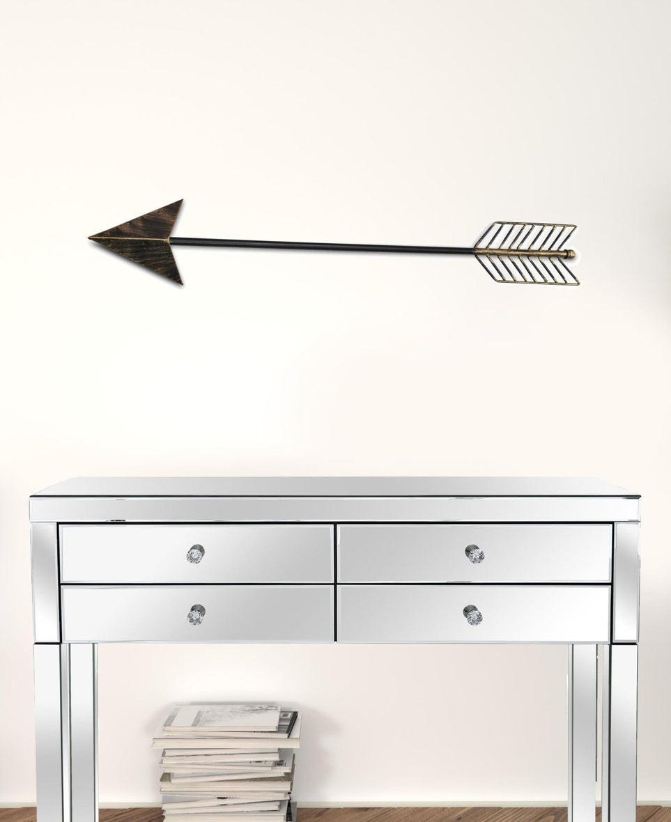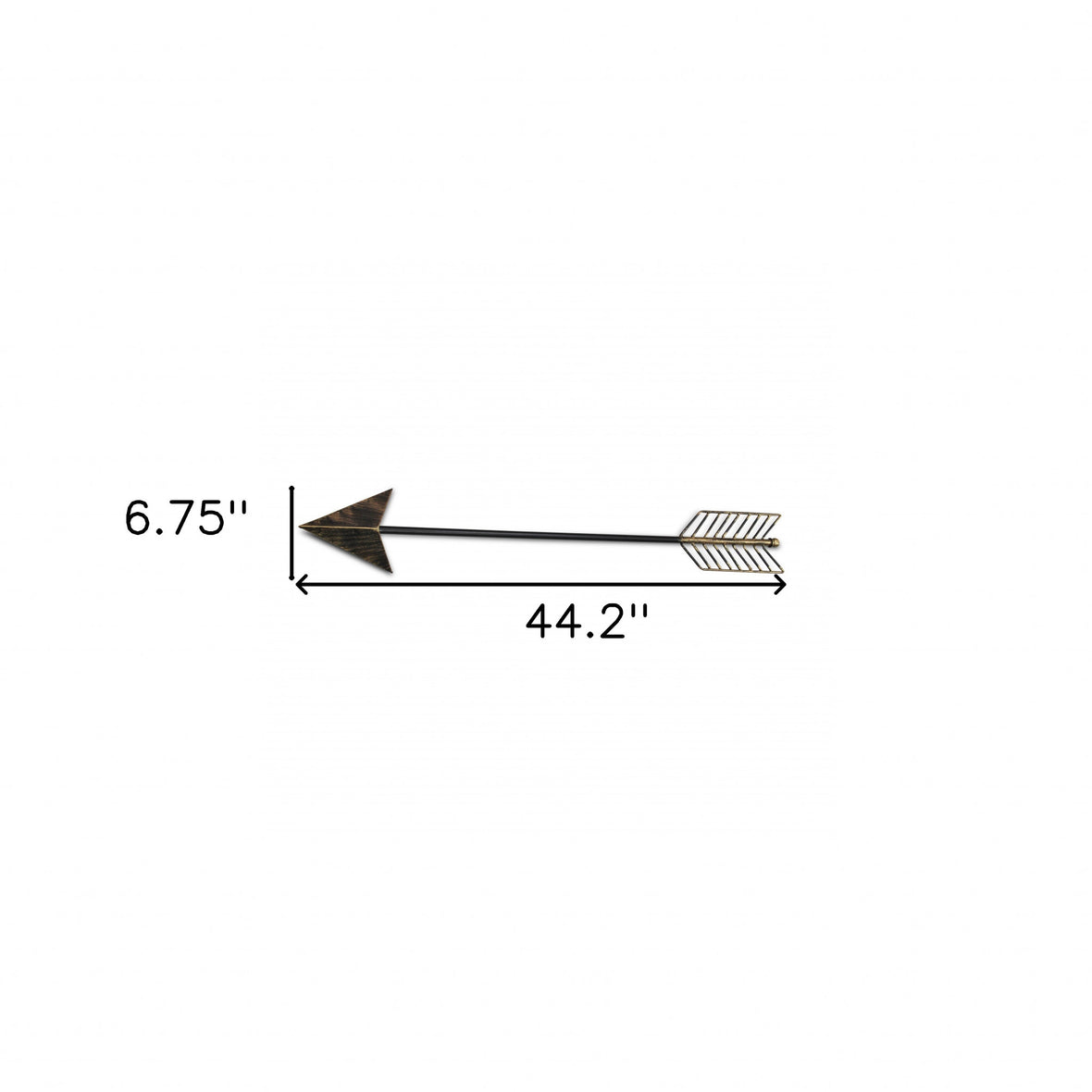 The Burnished Dark Brown and Gold Tone Metal Arrow Wall Decor is a captivating addition to any room, blending artistic craftsmanship with modern aesthetics. Measuring 44.25 inches in width and 6.75 inches in height, this sleek wall art extends just 1.5 inches from the wall, making it an ideal choice for a variety of spaces, from narrow hallways to expansive living rooms.
