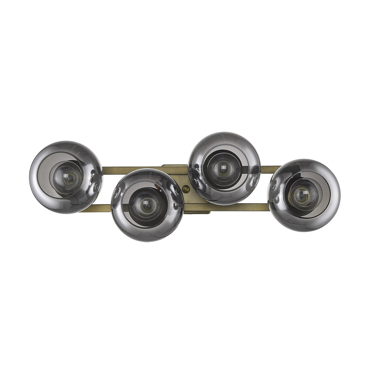 Make a bold design statement with the Lunette 4-Light Aged Brass Wall Sconce—an elevated blend of mid-century modern lighting and contemporary sophistication. As the larger sibling in the Lunette collection, this fixture features four perfectly aligned handblown smoked glass globes supported by a sleek aged brass frame, exuding balance, elegance, and luxury.