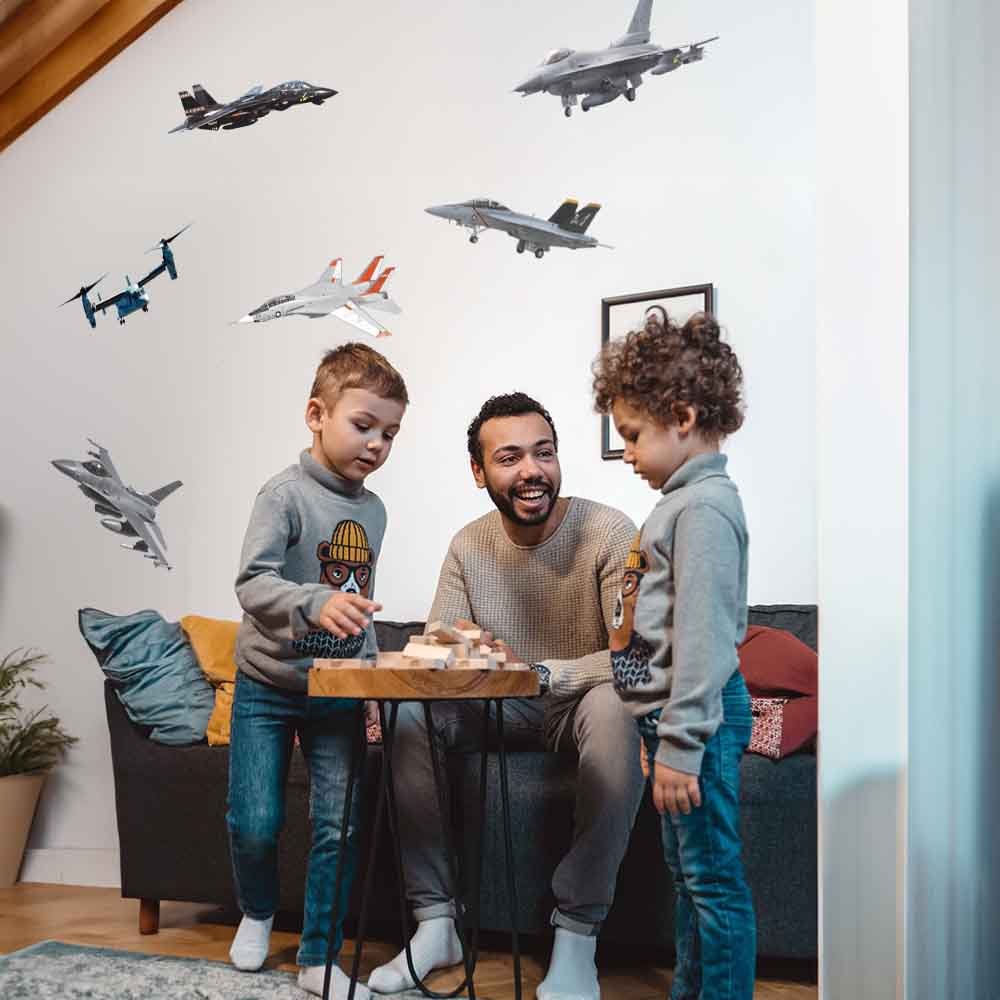 Military Aircraft Pack I Wall Decals Installed in Family Room