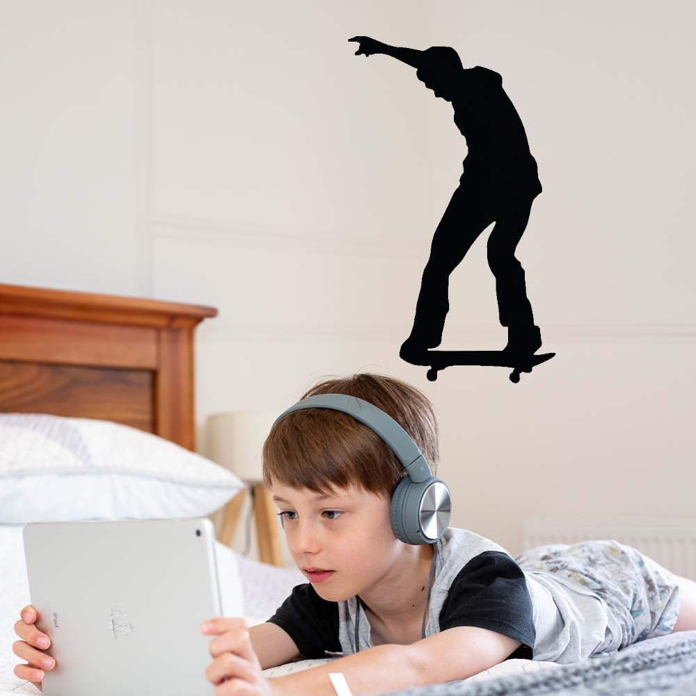 24 inch Skateboard Fontside Heelflip Silhouette Wall Decal Installed in Boys Room