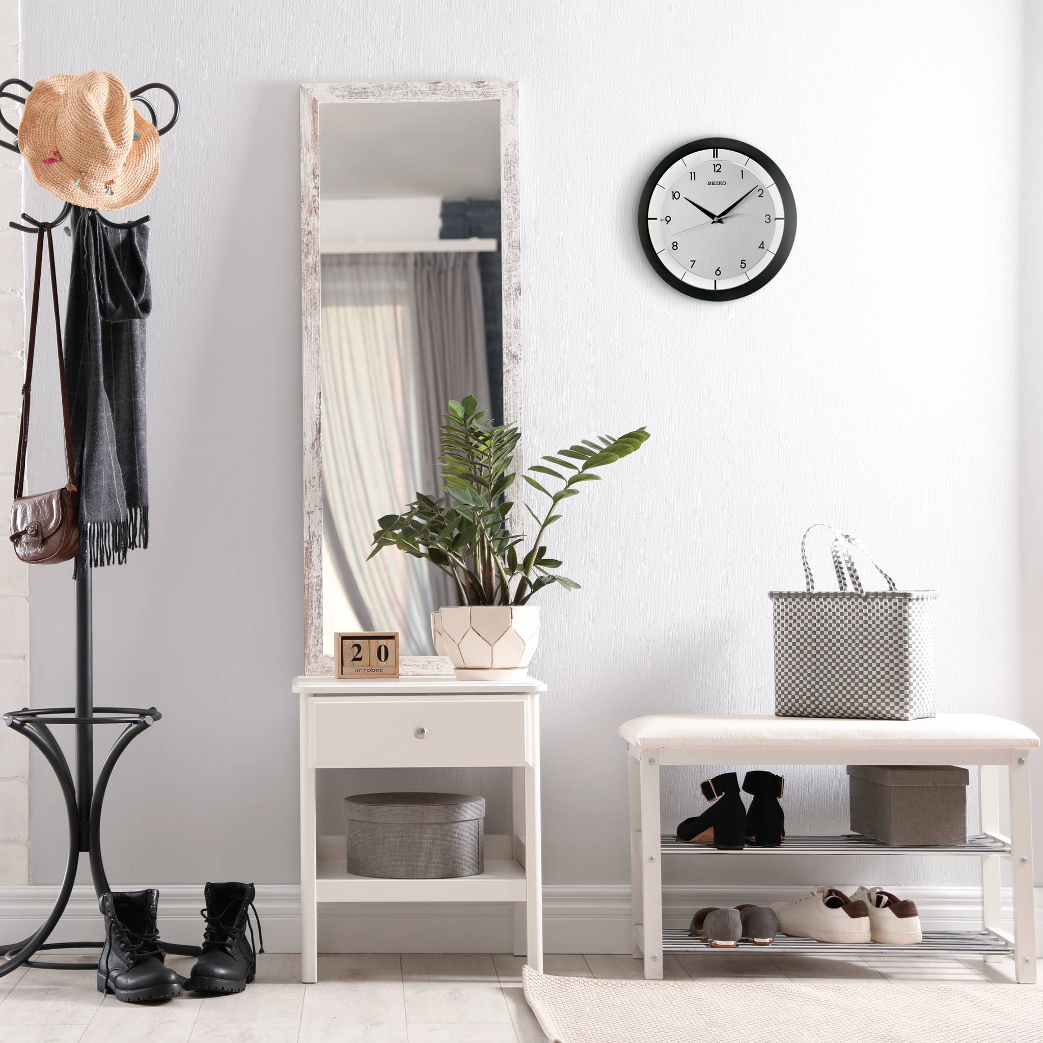 Designed for effortless readability, the contrasting black hands and numerals ensure that time is easily visible from any distance. Equipped with Seikoâs precise quartz movement, this clock offers exceptional accuracy, while the quiet sweep second hand ensures smooth, silent operation, making it ideal for bedrooms, offices, or study areas.