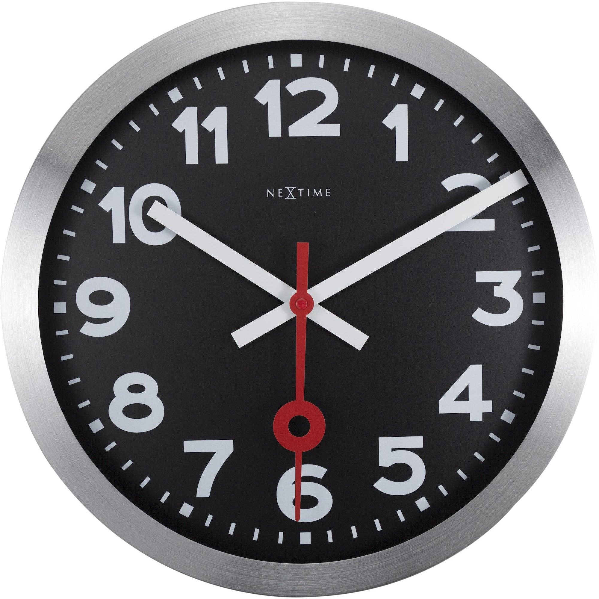 Experience Modern Minimalism with the 14" Nextime Black & Silver Classic Station Wall Clock