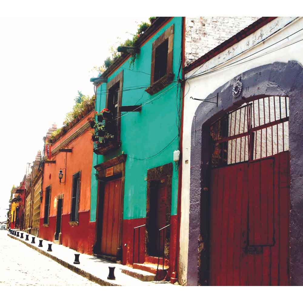 Colorful Mexican street architecture with buildings in a row wall decal printed | Wallhogs