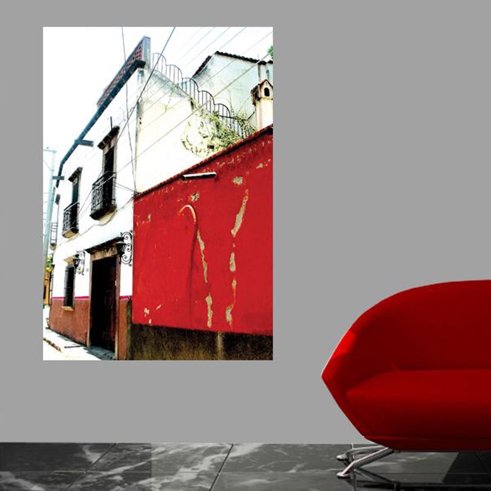 60 inch red and white Mexican house architecture decal installed on Wall between two windows