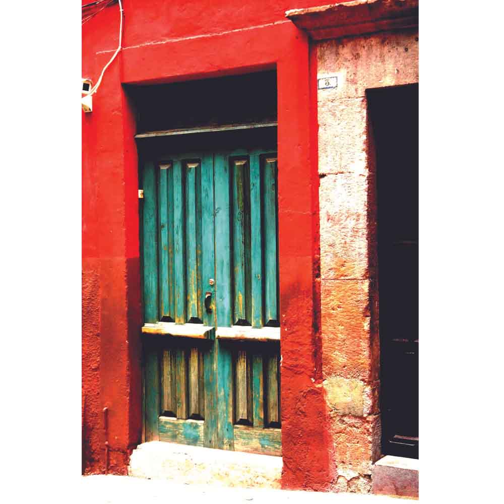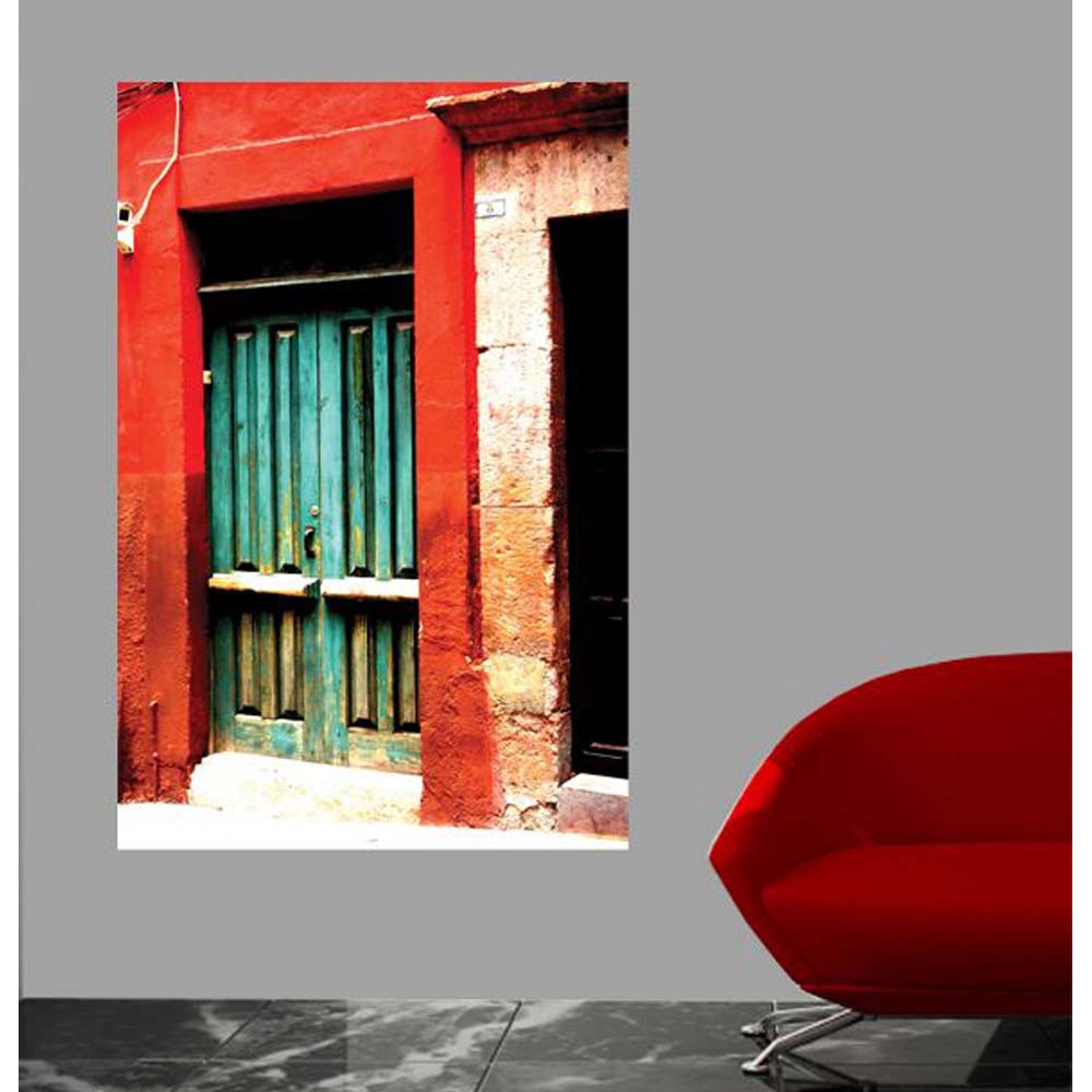 Red frame with green door Mexican architecture wall decal printed | Wallhogs