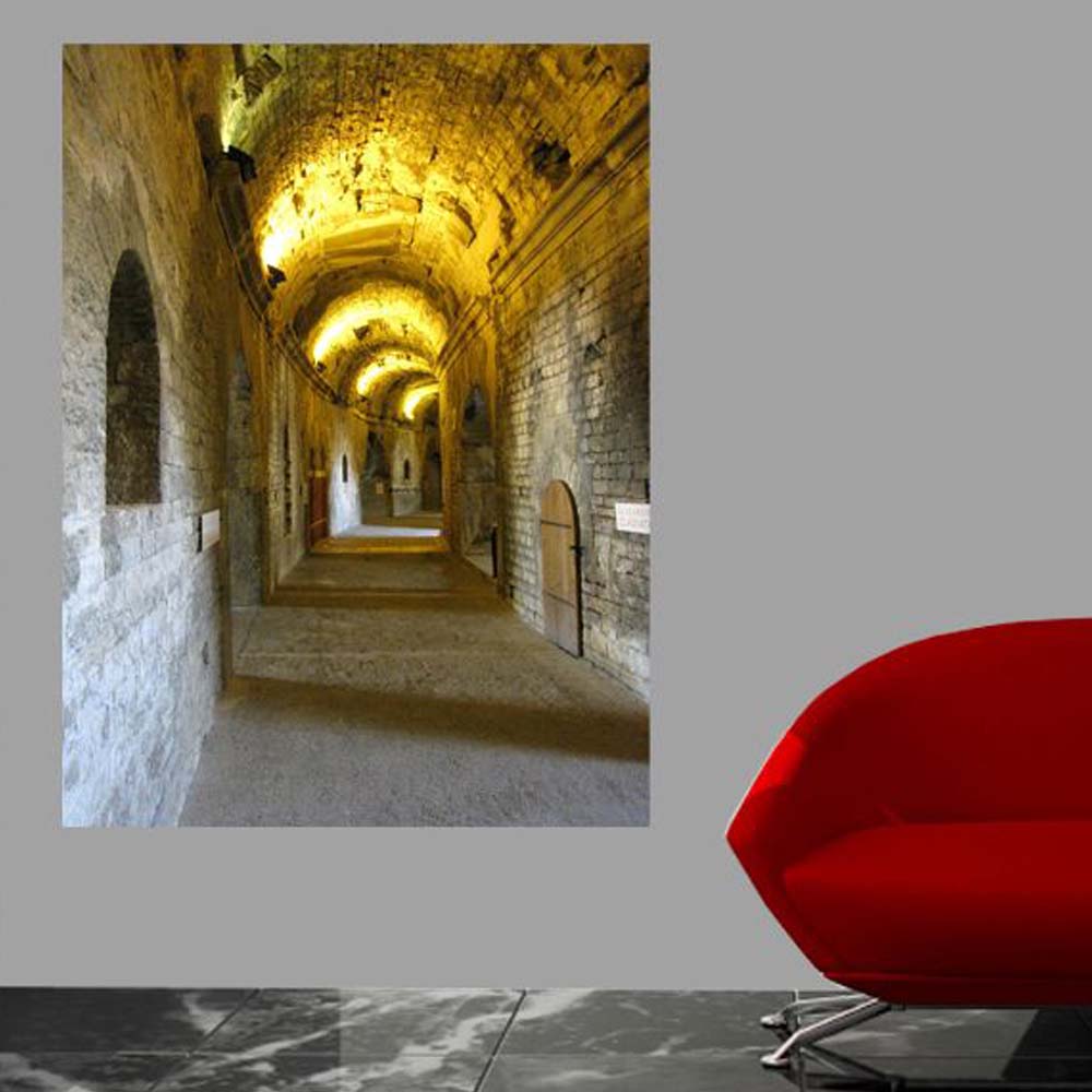 24 inch decal of a long, narrow hallway with arches in Nimes France Roman Arena installed on wall